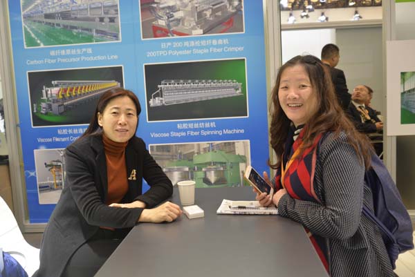 此次展会我公司展出了H7/HD305B型湿法纺丝机(模型)、K7/HD3210型干法纺丝机(模型)、KR/HD340型粘胶长丝连续纺丝机(模型)以及产品挂图和“网上纺机展”人机互动等形式。