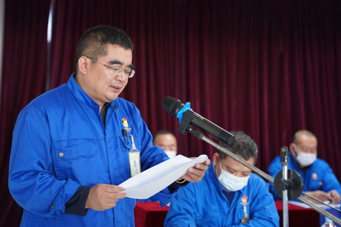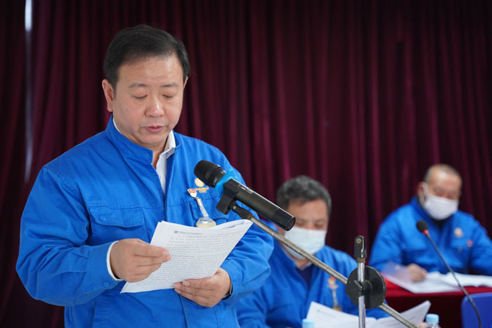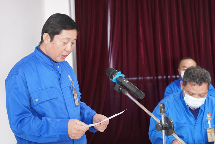公司副总经理王志兵宣读关于表彰2020年度先进集体、先进个人的决定以及公司党委表彰2020年度先进党支部、党员先锋岗、优秀党务工作者及优秀党员的决定。